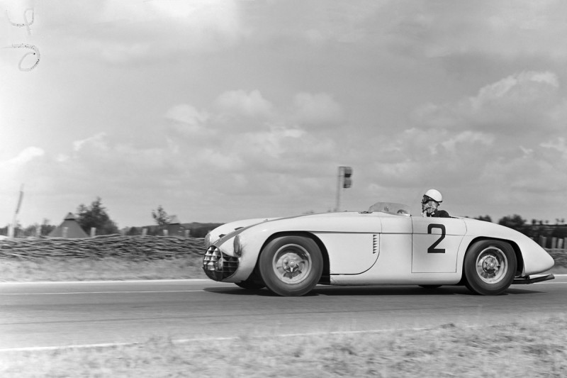 After devouring the Mulsanne Straight at over 250 km/h, John Fitch approached the Mulsanne Corner. The C-5R Cunningham was the fastest car of the 1953 24 Hours of Le Mans, thanks to its 5.5-liter Chrysler V8 engine. Combined with the chassis's robustness, these advantages allowed the Fitch/Walters crew to place their large prototype third on the podium, behind the Jaguar C-Type one-two finish. Following the decimation of the top teams, Briggs Cunningham's private team, the America's Cup skipper, would demonstrate that at the 24 Hours of Le Mans, it's better to hold on than to race, thanks to the solid design of its chassis powered by large American V8 engines. The prototype's drivers were no strangers to motorsport. Fitch had even flown Mustangs during World War II, shooting down several German aircraft. This 3rd place at Le Mans is almost a victory for the American delegation, who always bring their cars by road after disembarking from the ocean liner, having crossed the Atlantic and then landed in Le Havre.